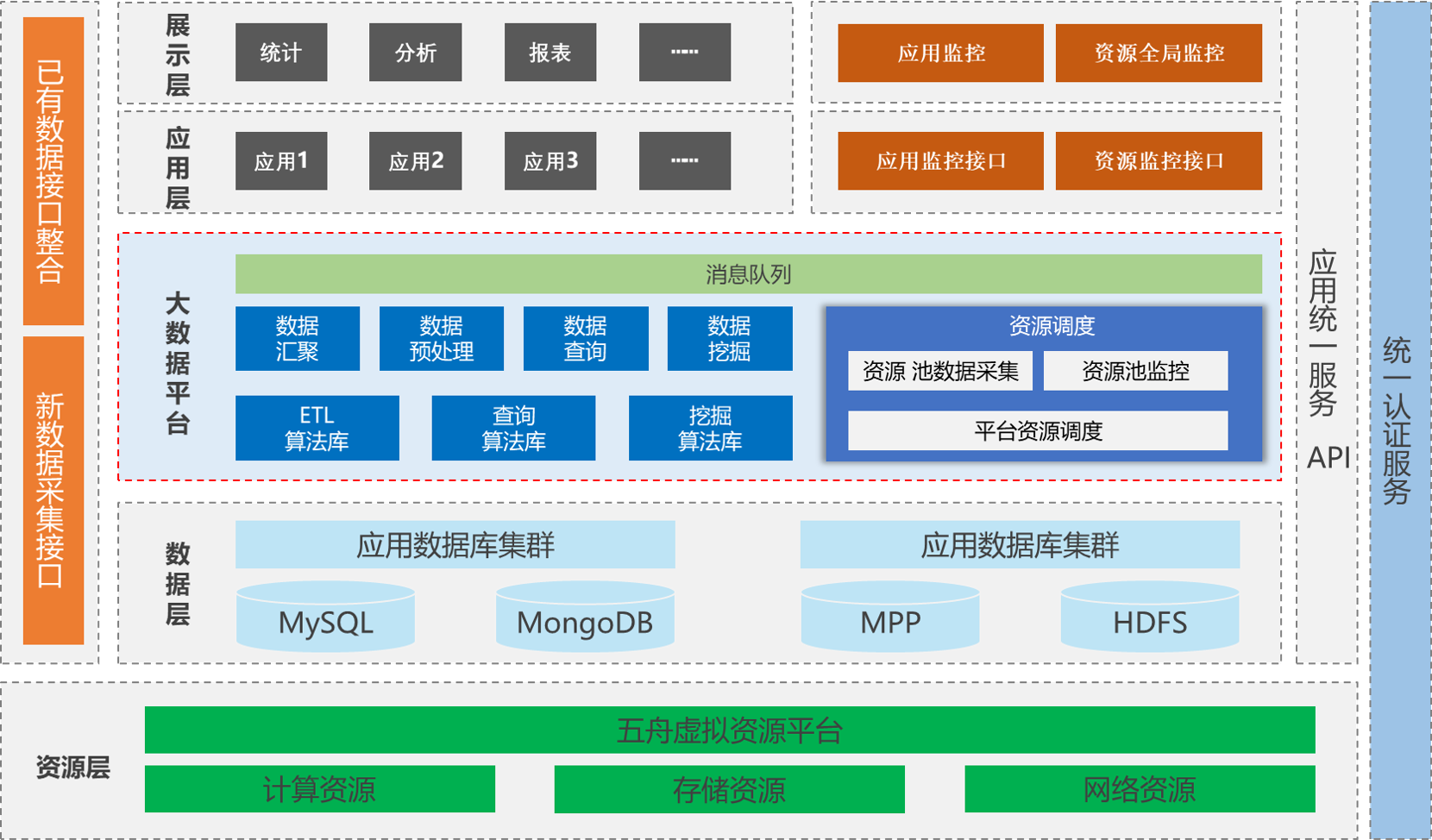 利用五舟公积金大数据解决方案,对接毕节市住房公积金数据,为客户提供决策支持。采用新型MPP数据库+Hadoop的融合架构,使用MPP处理PB级别的、高质量的结构化数据,同时为应用提供丰富的SQL支持能力;使用Hadoop处理海量半结构化、非结构化数据,从而满足用户多种数据的处理需求。