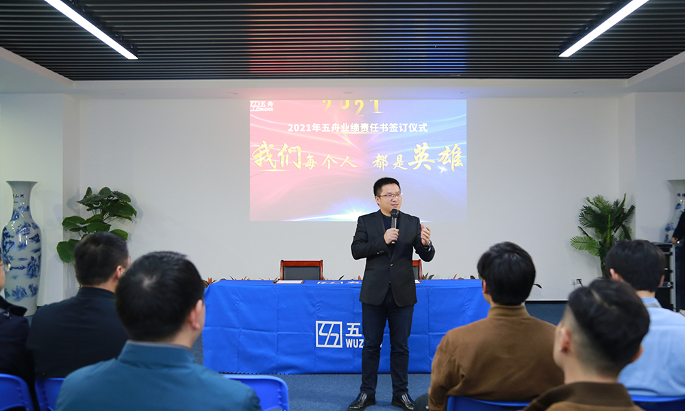 在激烈的市场竞争中,营销是企业成功的关键因素。为全面贯彻落实2021年度经营业绩目标,近日,五舟科技在广州总部召开了“五舟科技2021年业绩责任书签订仪式”,旨在增强营销团队的责任感和危机意识,主动作为,坚决打胜2021年经营业绩冲刺战!