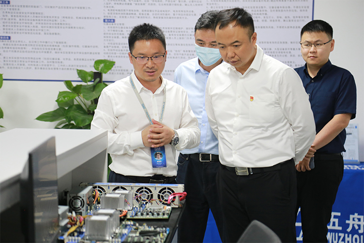 五舟总裁谢高辉首先对雷虎书记一行到访表示热烈的欢迎,对区委领导一直以来对五舟科技的关心表示衷心感谢。并汇报了五舟科技在过去的一年里,凝心聚力,克服种种困难,在疫情当中稳步推进,取得积极进展,营业额和利润实现高速增长。