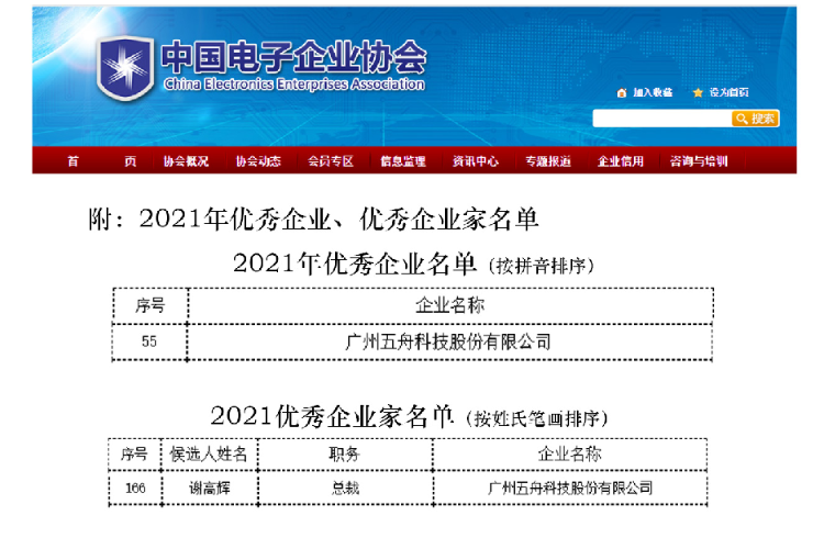 近日,中国电子企业协会根据《优秀企业、优秀企业家评选办法》要求,经过评审委员会公平公正的初审、评审、公示、终审,公示了“2021年优秀企业、优秀企业家”表彰名单,共评选出国家级优秀企业223家,优秀企业家174人。