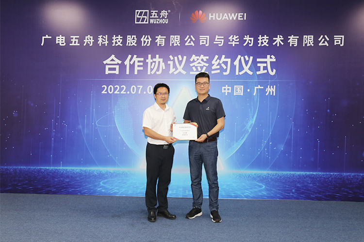 2022年7月1日,广电五舟与华为在广州正式举行“整机伙伴合作协议”签约仪式暨“华为昇腾万里伙伴”授牌仪式。这是继6月17日在2022广电五舟信创生态赋能大会上,双方签署的“Powered by Ascend (PBA)品牌授权协议后的进一步战略握手。双方将基于昇腾AI基础软硬件平台打造联合解决方案,开展创新合作,共同推动人工智能产业高质量发展,加速产业数字化转型和智能升级。