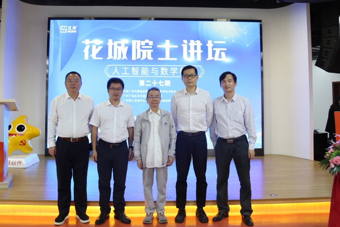 10月20日上午,在中共广州市委组织部、广州市科学技术协会指导下,在广州院士活动中心、中共黄埔区委组织部、广州市黄埔区科学技术协会的支持下,由广州广电五舟科技股份有限公司(以下简称“广电五舟”)主办的“第二十七期花城院士讲坛”在黄埔红创谷正式召开,中国科学院院士、广电五舟首席科学家张景中作为本期讲坛的主讲嘉宾分享了主题为《人工智能与数学教育》的专题报告。