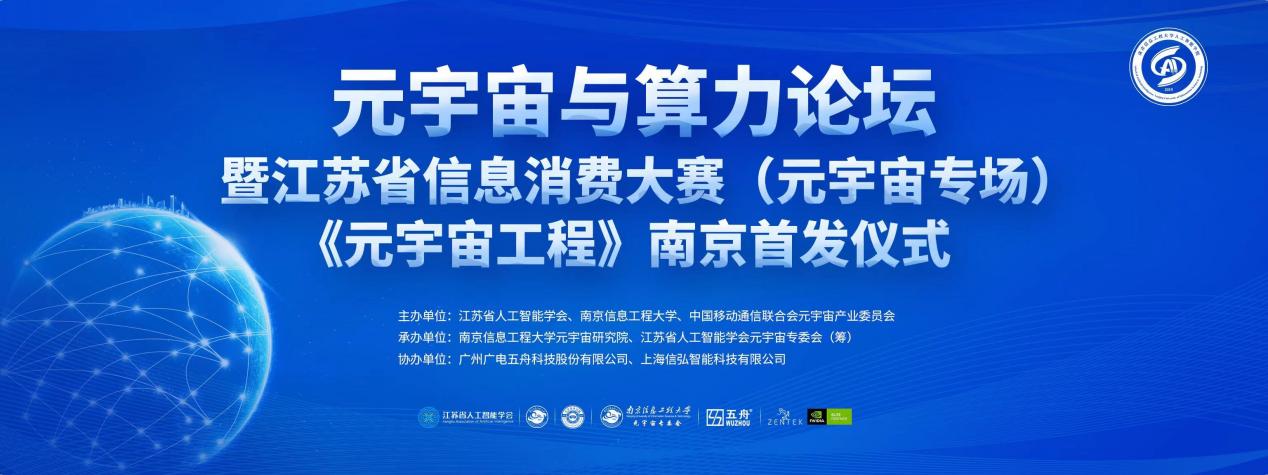 2022年11月20日上午,由江苏省人工智能学会、南京信息工程大学人工智能学院(未来技术学院)、中国移动通信联合会元宇宙产业工作委员会联合主办,由南京信息工程大学元宇宙研究院、江苏省人工智能学会元宇宙专委会(筹)协办,广州广电五舟科技股份有限公司(以下简称“广电五舟”)承办的《元宇宙与算力论坛暨江苏省信息消费大赛(元宇宙专场)》以及《元宇宙工程》南京首发仪式(以下简称“论坛”)在南京召开。