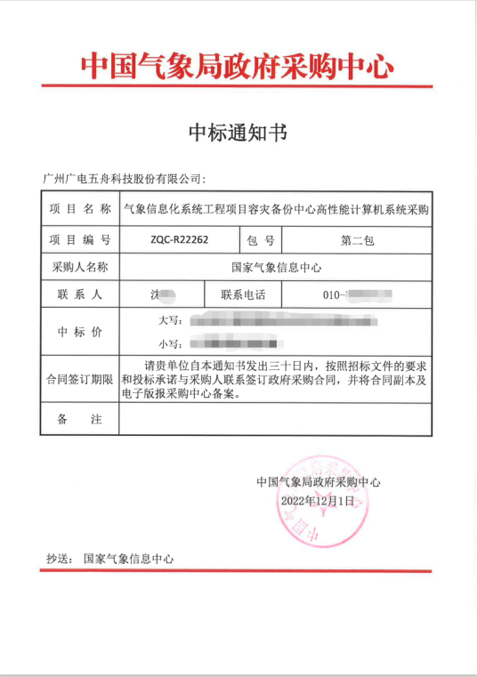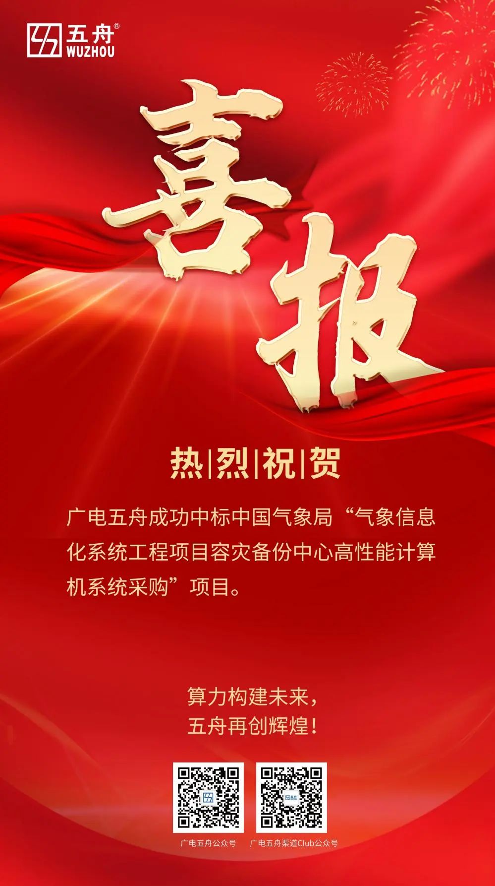 近日,广电五舟成功中标中国气象局“气象信息化系统工程项目容灾备份中心高性能计算机系统采购”项目第二包,中标总金额过亿元!