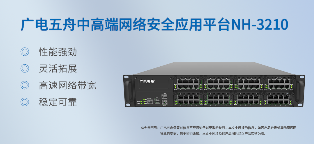 网络安全设备作为网络基础设施,承担着维护网络安全的重要责任。因此,网络安全设备的性能非常重要。网络安全设备应具备高性能、高可靠性、高安全性等特点,以确保网络安全。广电五舟中高端网络安全应用平台NH-3210,基于国产HG C86架构8核心处理器设计开发,拥有强大的计算及网络吞吐能力的国产化网络应用平台,在精简相应配置的同时可实现较高的产品性价比。NH-3210的发布,进一步丰富和拓展了广电五舟在国产化网络安全硬件平台中高端产品线的布局。