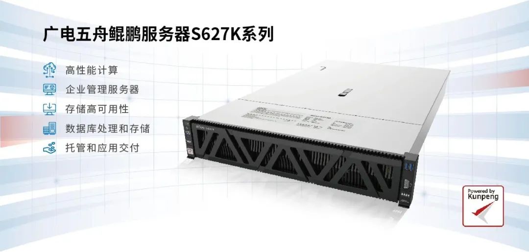 广电五舟鲲鹏服务器S627K系列是基于鲲鹏处理器而打造的,兼具高性能计算、大容量存储、低能耗、易管理、易部署等优点的高性价比服务器产品。其采用领先的架构,能够最大程度地提高多线程应用的并发执行能力;同时支持弹性的、可扩展存储容量空间,具备高级内存容错功能,契合电子影像及档案服务平台高存储、高效数据处理能力的需求,尤其适用于数据需求大、数据安全要求高的政企行业。