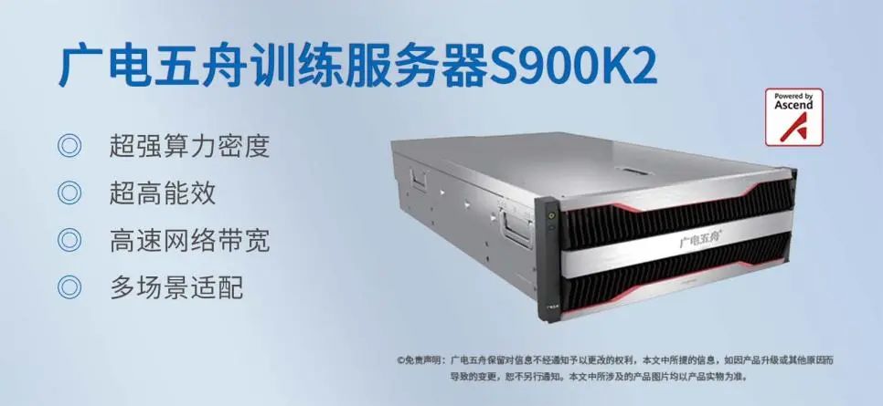 广电五舟训练服务器S900K2搭载4颗鲲鹏处理器,单颗基准频率2.6GHz,整机最大可支持8张Atlas 300I Pro推理卡、Atlas 300V Pro视频解析卡或Atlas 300V视频解析卡,可提供2.56 PFLOPS FP16超强算力,支持100Gb接口能力,AI处理芯片之间采用高速互连链路,提供60GB/s带宽能力。广电五舟训练服务器S900K2广泛应用于深度学习模型开发和训练,适用于智慧城市、智慧医疗、天文探索、石油勘探等需要大算力的行业领域。