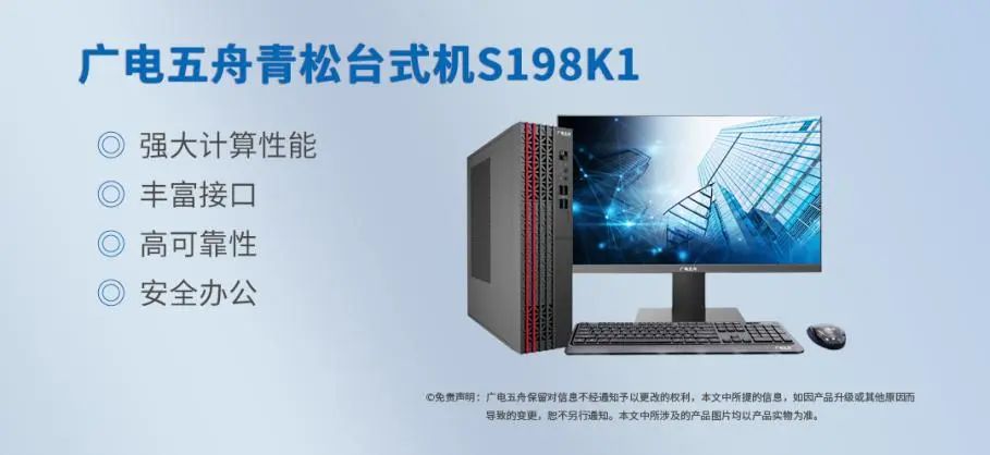 广电五舟青松台式机S198K1是基于ARM架构8核高性能处理器开发的微型计算机,具有高性能、接口丰富、高可靠性、易用性等特点。支持国产主流应用软件,确保基础计算平台满足核心领域高信息安全的需求。广泛适用于国防、政府、电力、教育、金融,医疗、安平、交通、运营商及互联网及企业的个人办公应用。