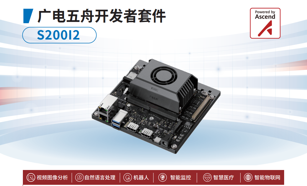 广电五舟开发者套件S200I2是基于华为Ascend系列AI芯片打造的开发套件,搭载华为自主研发的Mind Studio开发工具链,能够支持多种AI算法的调试和优化,并可方便地进行AI模型的训练和部署。同时,该套件支持多种接口和扩展方式,例如GPIO、HDMI、USB等,可以满足不同应用场景的需求。其具有超强计算性能、大容量存储、配置灵活、体积小、支持温度范围宽、环境适应性强、易于维护和支持云边协同等特点,可以在边缘环境广泛部署,满足在安防、交通、社区、园区、商场、超市等复杂环境区域的应用需求。