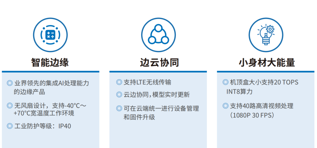 广电五舟智能小站S500I2是业界领先集成AI处理能力的边缘产品,最大支持40路高清视频处理能力,具备超强计算性能、大容量存储、配置灵活、体积小、支持温度范围宽、环境适应性强、易于维护和支持云边协同等特点,可以在边缘环境广泛部署,满足在安防、交通、社区、园区、商场、超市等复杂环境区域的应用需求。