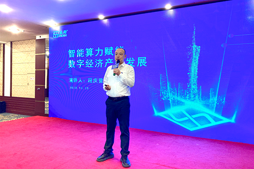 广电五舟作为华为的生态战略伙伴之一,特邀华为吉林区数据中心业务总经理杨悦到场演讲,杨悦介绍了华为生态系统与产品布局,以科技力量助阵智算发展。