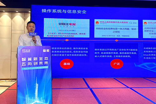 湖南麒麟信安科技东北区高级技术顾问单凌轩为在场人士介绍道,麒麟信安科技作为技术领先的国产操作系统、云计算、信息安全解决方案和产品供应商,扎根湖湘十余载、赋能千百行业用户,一直致力于推动国产化安全应用的使命。