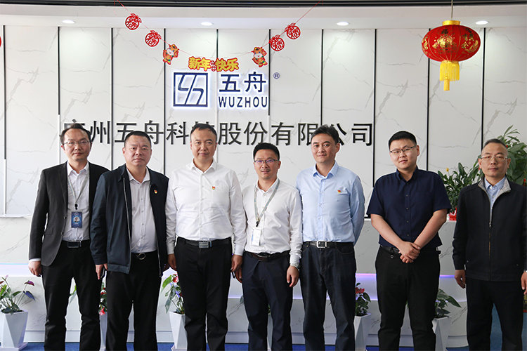 人勤春来早,奋斗正当时。2月21日,是五舟科技新年佳节后的首个工作日。黄埔区委常委、政法委书记、云埔街道办党工委书记、加速器园区党委书记雷虎同志,黄埔区委一级调研员林斌同志一行到五舟科技走访视察开工情况,为五舟科技全体员工送来诚挚的问候和新春祝福,五舟总裁谢高辉率公司高管热情接待视察。雷虎书记一行通过实地调研、交流座谈的形式,详细了解五舟科技的2020年经营情况及2021年发展规划,为五舟科技在新的一年中实现更大突破做了重要的方向指示。