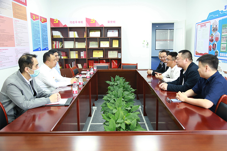 五舟总裁谢高辉首先对雷虎书记一行到访表示热烈的欢迎,对区委领导一直以来对五舟科技的关心表示衷心感谢。并汇报了五舟科技在过去的一年里,凝心聚力,克服种种困难,在疫情当中稳步推进,取得积极进展,营业额和利润实现高速增长。