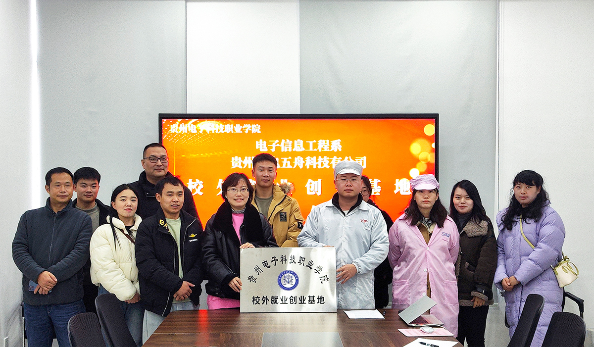 12月6日,贵州广电五舟与贵州电子科技职业学院电子信息工程系共建校外就业创业基地挂牌仪式在贵州广电五舟圆满举行。此次合作旨在进一步深化校企合作,促进产学研深度融合,双方将共同致力于培养高素质技术技能型人才,推动学生高质量就业与创业,并助力企业技术创新与产业升级。贵州广电五舟生产部经理陈俊吉,贵州电子科技职业学院电子信息工程系党总支副书记董婷婷、教务科科长杨国勇一行参加仪式。