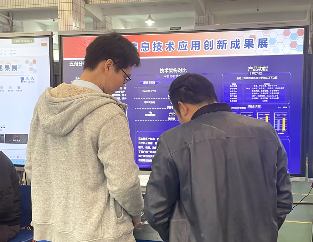 在信创生态成果推广交流会环节中,广电五舟现场展示了获奖产品五舟分布式存储系统和五舟高性能计算集群管理调度平台,以及基于国产鲲鹏处理器的智算服务器。