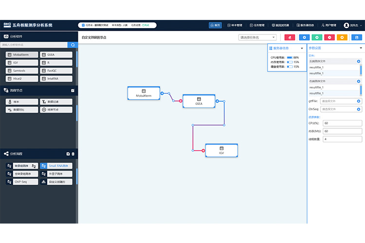 五舟核酸测序分析一体机是专门为生物信息分析而设计的软件定义服务器产品。融合了全转录组测序分析、数字表达谱、small RNA-seq、外显子和ChIP-seq数据等诸多分析流程,这些流程分析结果与原文章分析结果有95%的相似性,即确保了分析结果的准确性;该系统一天内能完成40个数字表达谱测序样品;上述技术测序公司是按照样品数收取分析费用,分析费用常常占项目的50%左右的费用,该系统的出现大大降低了客户的分析费用;同时客户能在零生信背景基础下完成上述数据分析,大大降低了生物信息学门槛。该产品为科研机构提供了一个高效、便捷分析服务器。