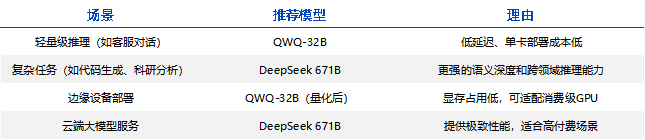 2)对话系统:━ QWQ-32B:适合企业级对话(如客服、医疗咨询),推理延迟较低。━ DeepSeek 671B:在多轮深度对话(如心理咨询、复杂技术咨询)中表现更佳,但需多卡推理降低延迟。