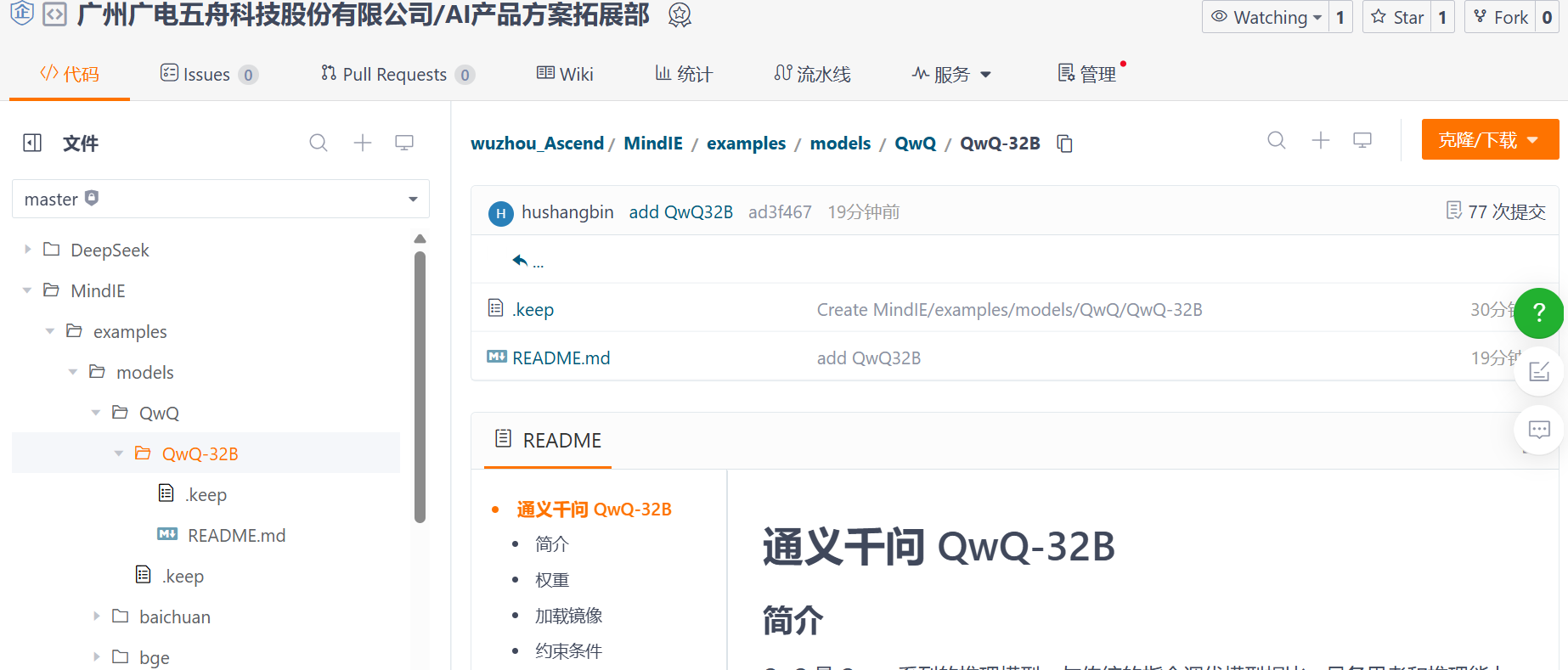https://gitee.com/wuzhou_AI/wuzhou_Ascend/tree/master/MindIE/examples/models/QwQ/QwQ-32B