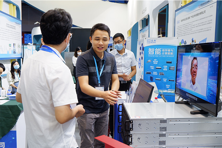 在五舟展位展示的两个院士成果“智能教学教育云平台网络画板及分布式存储系统”不但吸引了众多现场观众前来咨询,也获得广州市科学技术协会和黄埔区科学技术协会等领导莅临展位参观指导,五舟售前技术人员针对数据中心的分布与存储管理等核心问题,基于软硬件并重,通过现场的演示操作,详细讲解五舟服务器搭载的五舟分布式存储系统PentaStor软硬件整体解决方案,大数据与存储等领域的创新应用技术平台,也获得了他们一致好评。