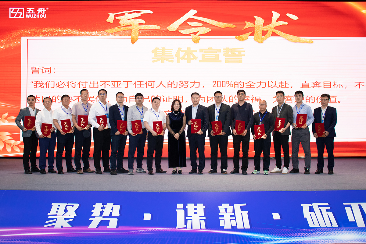在激昂的宣誓声中,广电五舟营销精英们以决战之姿,郑重签署军令状。一纸承诺,千钧使命,各战区负责人立下铁血目标,以业绩为号,以市场为令,誓夺2025战略高地。此次军令状的签署,不仅彰显了团队破釜沉舟的决心,更吹响了冲锋的号角,全体将士将以淬炼后的锋刃,劈波斩浪,决胜未来!