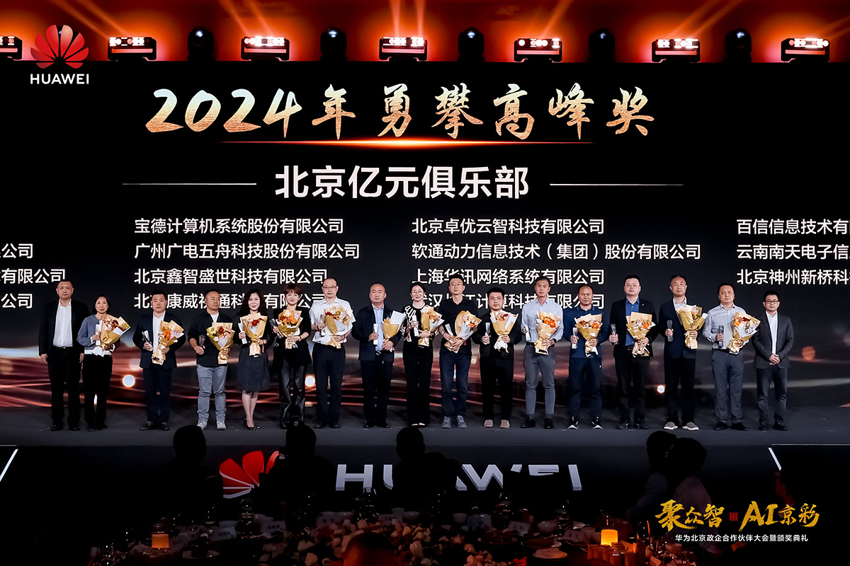4月18日,主题为“聚众智,AI京彩”的2025华为北京政企合作伙伴大会暨颁奖典礼在北京盛大举行,广电五舟董事长廖海英应邀出席大会。广电五舟凭借在北京区域市场的深耕细作、技术创新与业绩突破,斩获华为“2024年勇攀高峰奖-北京亿元俱乐部”、“京彩整机伙伴-高速增长奖”两项大奖。在本次大会上,广电五舟正式参与华为北京政企2025年整机伙伴BP签署计划,双方将深度整合在技术研发创新与市场战略拓展领域的核心优势资源,以协同共进之姿,共同擘画数智化发展新蓝图,开启合作共赢新篇。
