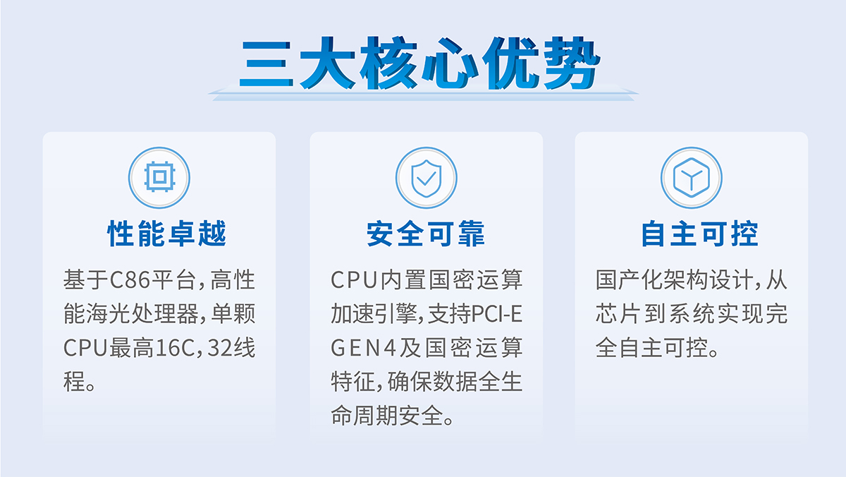 该产品由广电五舟自主研发,搭载海光HG3400系列高性能处理器,并深度融合国密算法与可信计算技术,确保全方位的数据安全保障。