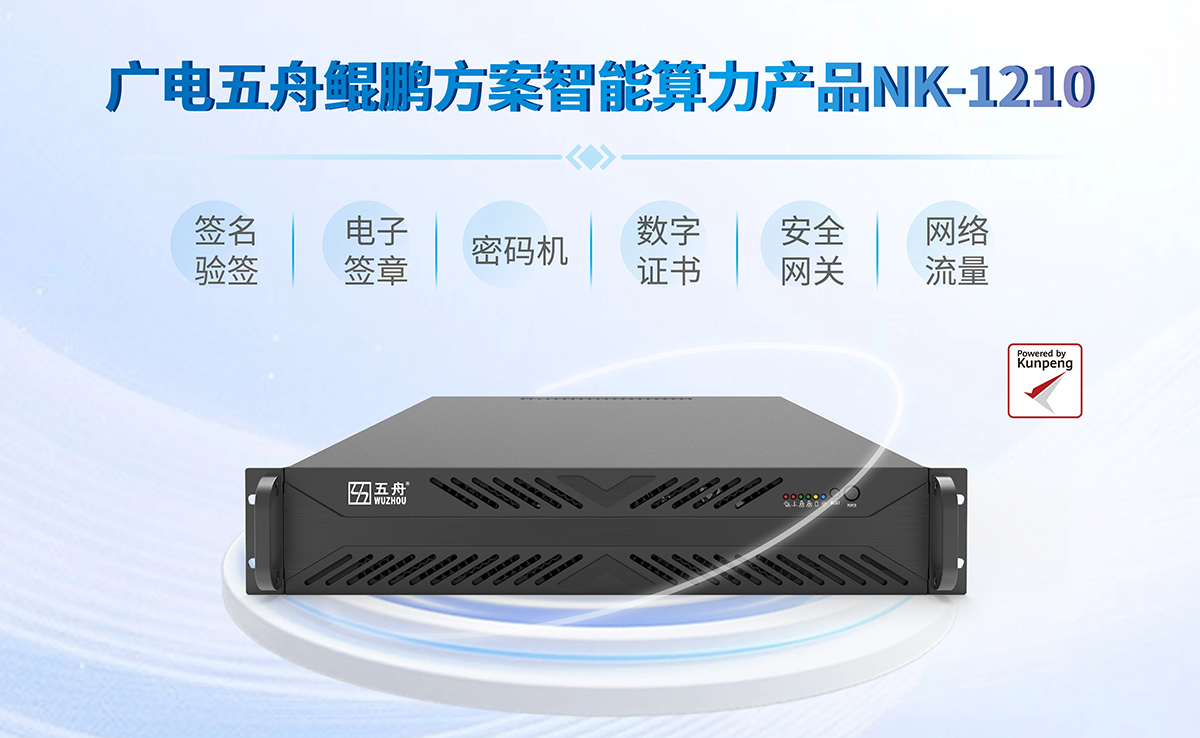作为智算领域的深耕者和网络强国的共建者,广电五舟深知保护网络安全不仅仅是技术上的挑战,更是对社会安全和未来发展的承诺。基于多年的行业积淀和对创新的不懈追求,我司全新推出了广电五舟鲲鹏方案智能算力产品NK-1210,产品不仅采用前沿的鲲鹏920Lite模组设计,更融合了自主可控技术和深度安全防护能力,旨在为各行业的数字基础设施提供全方位安全保障。