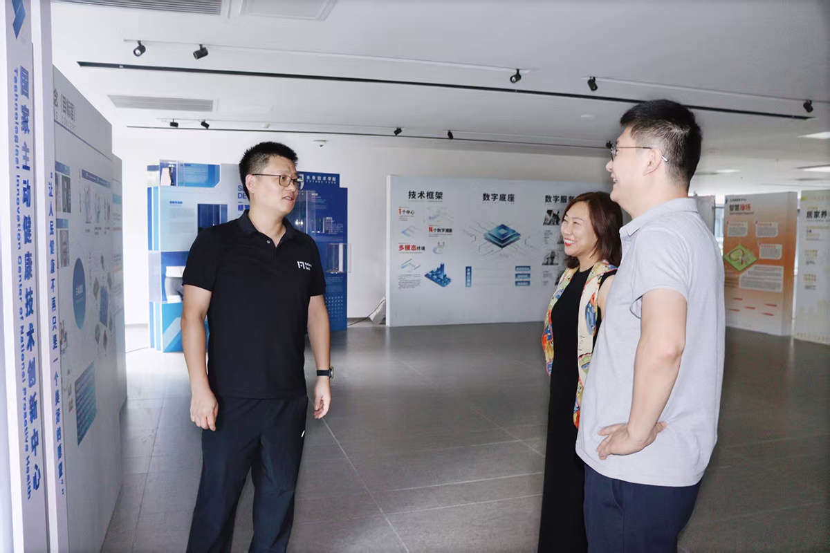 随后,广电五舟团队前往华南理工大学未来技术学院,在该校长聘教授、博士生导师许言午教授的带领下,参观了学院在人工智能、医学影像分析、数字疗法、计算机视觉与机器学习理论等前沿领域的最新科研成果,并就AI技术在智慧医疗、交叉学科创新中的应用前景进行深入交流。双方表示,将围绕科研平台共建、联合技术攻关及高层次人才培养等方面深化合作,共同探索产学研协同机制,加速前沿科技成果向实际应用转化。