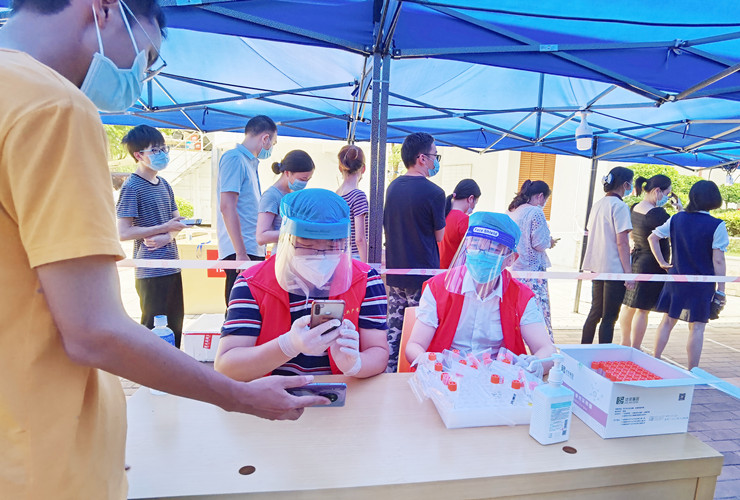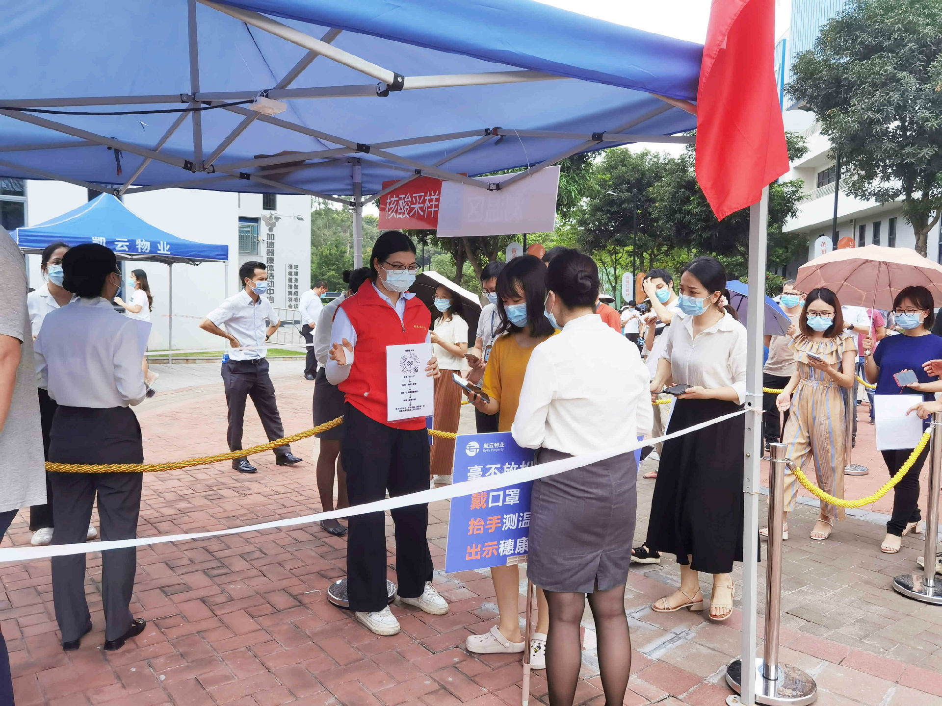 五舟党员志愿者们顶着烈日指引现场人员扫码登记信息,开展维持秩序、指引检测等工作,协助现场人员有序地分批完成核酸检测工作,本次共助力园区完成8000多人数核酸检测。