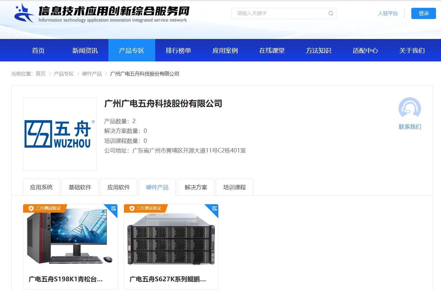 近日,广电五舟的两款明星产品——广电五舟鲲鹏服务器S627K系列和广电五舟青松台式机S198K1,成功入驻信息技术应用创新综合服务网。