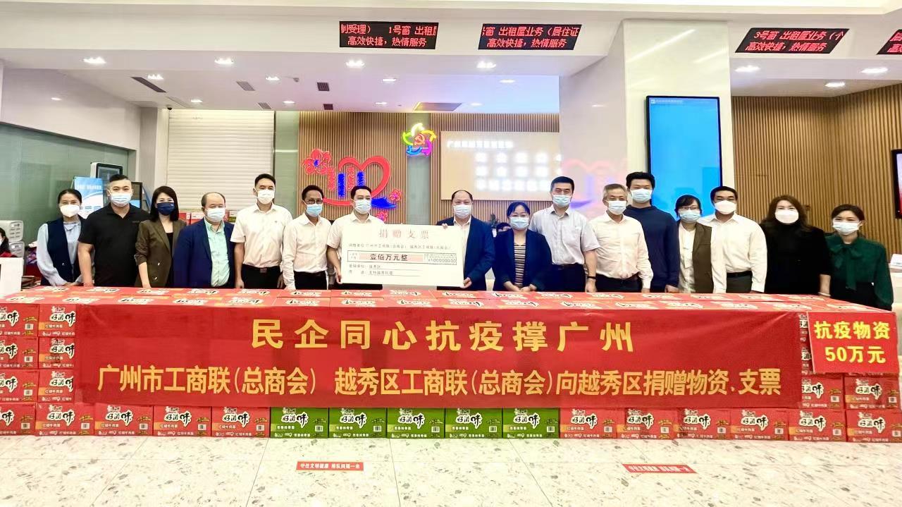 11月22日,“民企同心抗疫撑广州”捐赠仪式在广州市越秀区党群服务中心举行,市委统战部副部长、市工商联党组书记魏国华代表爱心企业、商协会向越秀区捐赠抗疫资金及物资,越秀区人大常委会主任孔祥虎代表越秀区接收捐赠。市工商联市管一级调研员杨丹,越秀区委常委、区委宣传部部长王静,区委统战部副部长、区工商联党组书记马红民等领导现场见证了捐赠仪式。