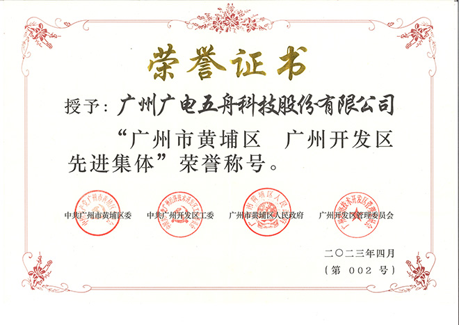 广电五舟凭借良好的社会责任与卓越的企业绩效,荣获“广州市黄埔区、广州开发区先进集体”荣誉称号。