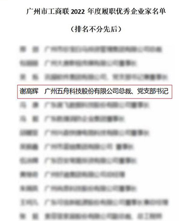 此次广电五舟董事长谢高辉荣获“广州市工商联2022年度履职优秀企业家”称号,也将勉励公司全体人员勇担社会责任,坚持以实际行动成就客户,回报社会,实现自身利益与社会效益的有机统一,为广州继续在高质量发展方面发挥领头羊和火车头作用作出新的更大贡献。