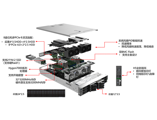 前置:最大支持12个3.5寸/2.5寸硬盘;可选24个2.5寸硬盘平台,支持NVME 后置:最大支持4个2.5寸硬盘 内置:最大支持2个M.2 SSD |