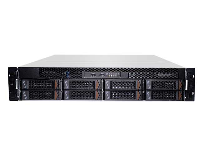 | 支持前置8块3.5/2.5寸热插拔硬盘和后置2.5寸系统盘,支持5个标准PCIe扩展槽 |