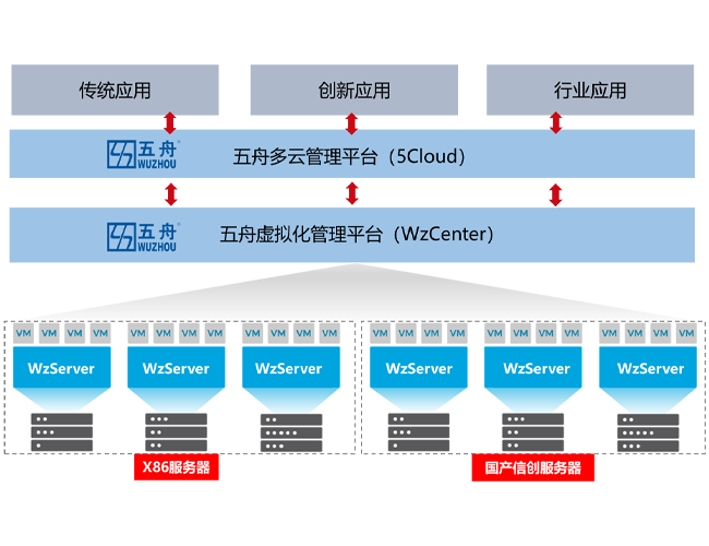 五舟5Cloud云平台的架构,从整体系统上提高可靠性,降低系统对单设备可靠性的要求。