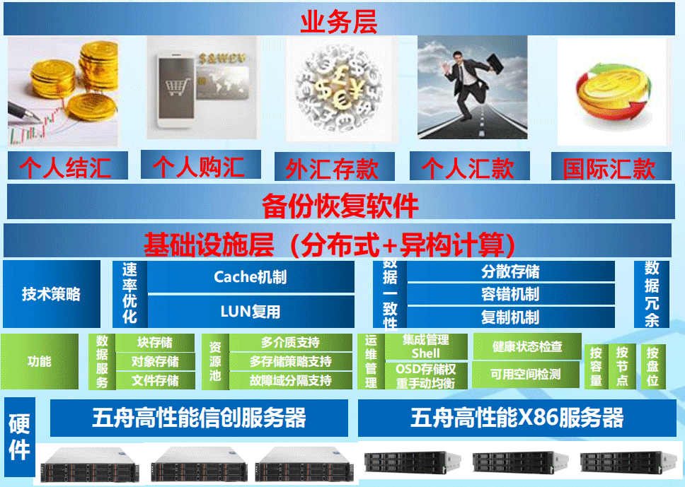 针对兴业银行当前业务的实际需求以及业务系统的现状,提出了“2+2”的整体解决方案,第一个2指分布式存储架构+备份业务系统,分布式存储快速扩容和纠删码/副本机制可有效保护数据安全,同时轻松应对数百PB数据量的增长,第二个2指X86和信创的基础架构,银行大部分业务架构运行在X86底座,为了保证兼容性和协议的通常,部分业务使用信创硬件支撑,信创平台底座一方面是业务需要,另一方面打造是为客户防漏洞、堵后门,打造本质安全的数据备份。