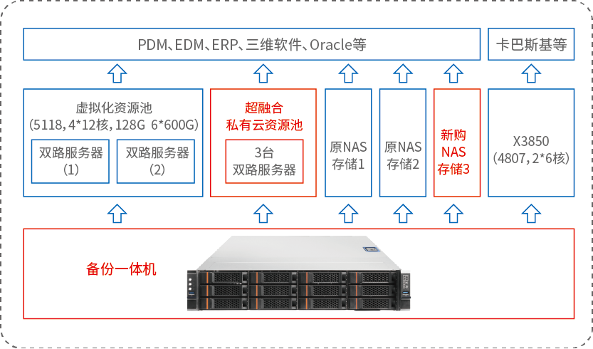 完成升级后,以超融合私有云的资源池承载核心应用,大大提升了硬件性能,分布式存储增加了数据可用性和安全性,备份容量增加到56T,可以备份所有数据。