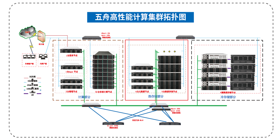 经过与爱笔科技对接,我司从计算、2P热存储、6P冷存储、管理网络、计算网络五个方面考量,最终采用五舟HPC8000集群系统,汇聚网络和热存储部分采用冗余网络设计、提供WEB可视化管理平台和PB级海量存储系统,兼容debian操作系统。 为保证项目质量,双方共同组建项目组,确保详细设计、项目实施、项目测试、项目验收、售后服务支持等各关键环节相关工作,提出专业的项目实施计划、验收规范与培训计划,以保证用户对技术、产品的掌握,保障后期系统运行管理维护工作。