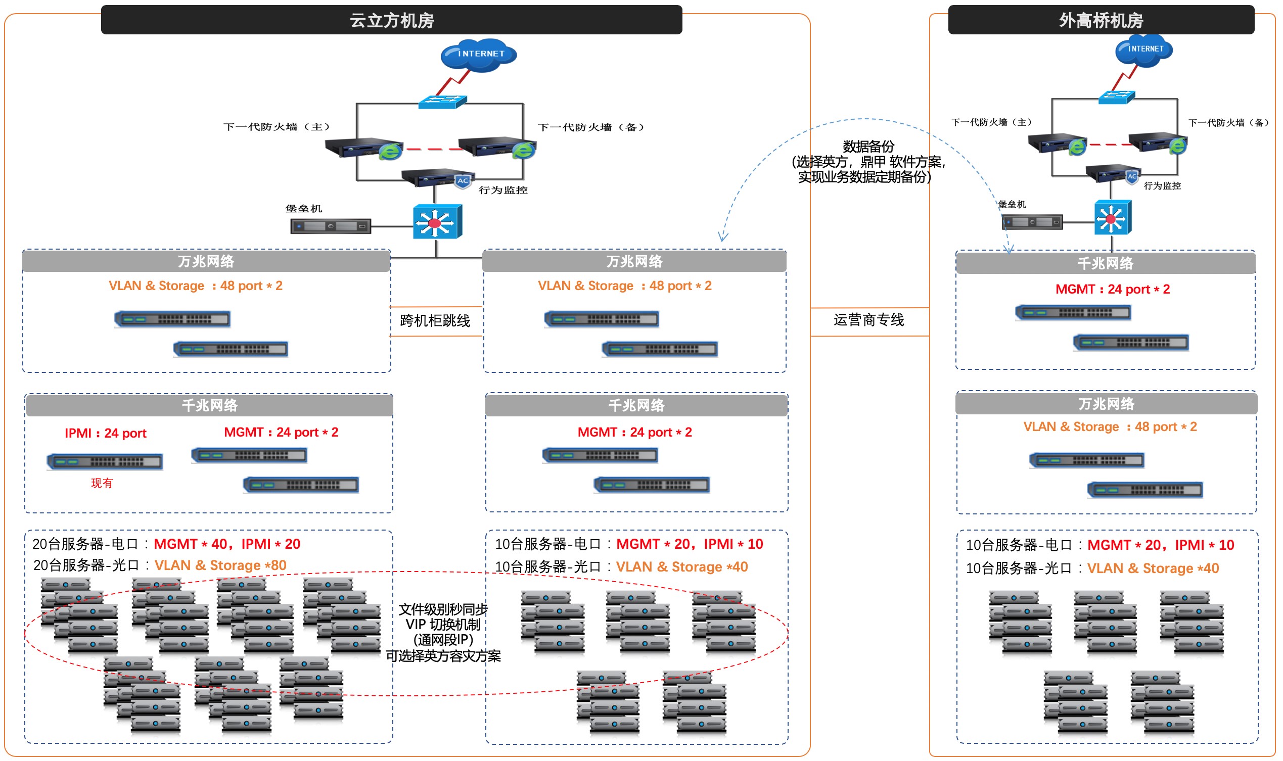 二期项目采用10+10台五舟私有云平台,完成主/备站点灾备建设。